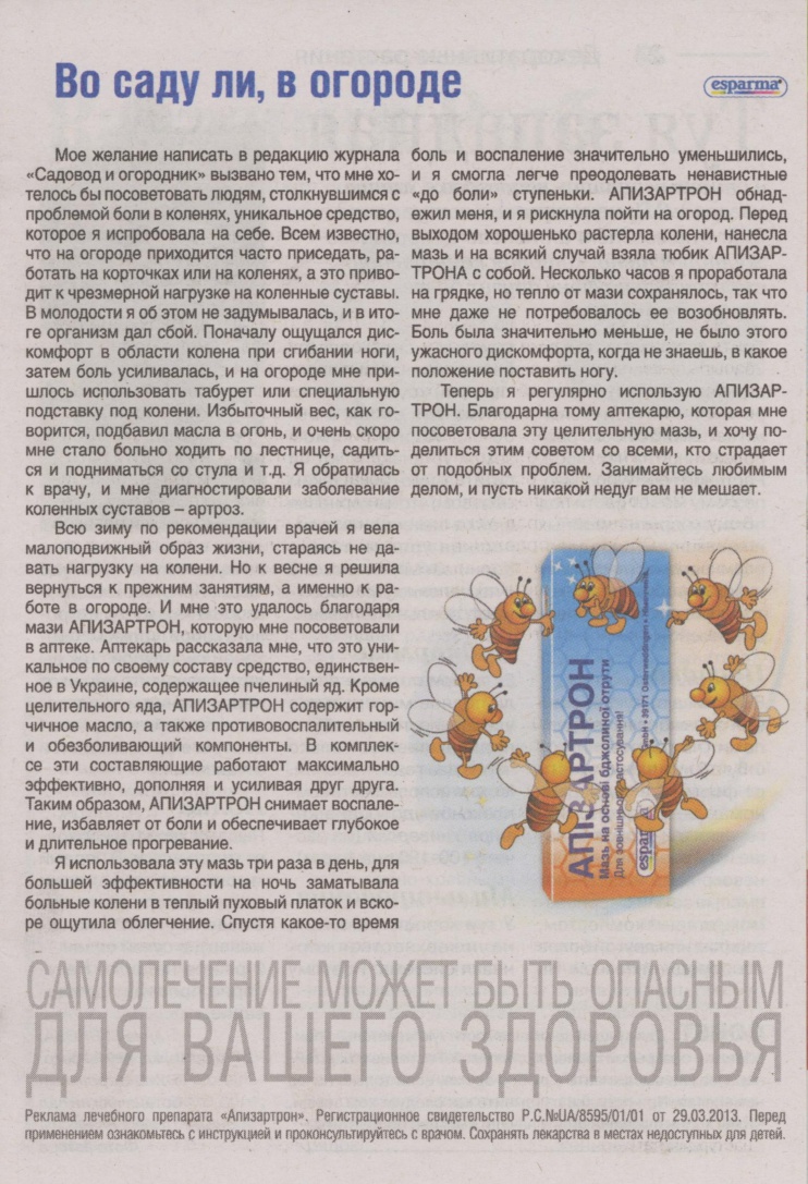 Ключевые слова: Апизартрон, пчелиный яд, метилсалицилат, горчичное масло, мышечная боль, суставы, боль в коленях.