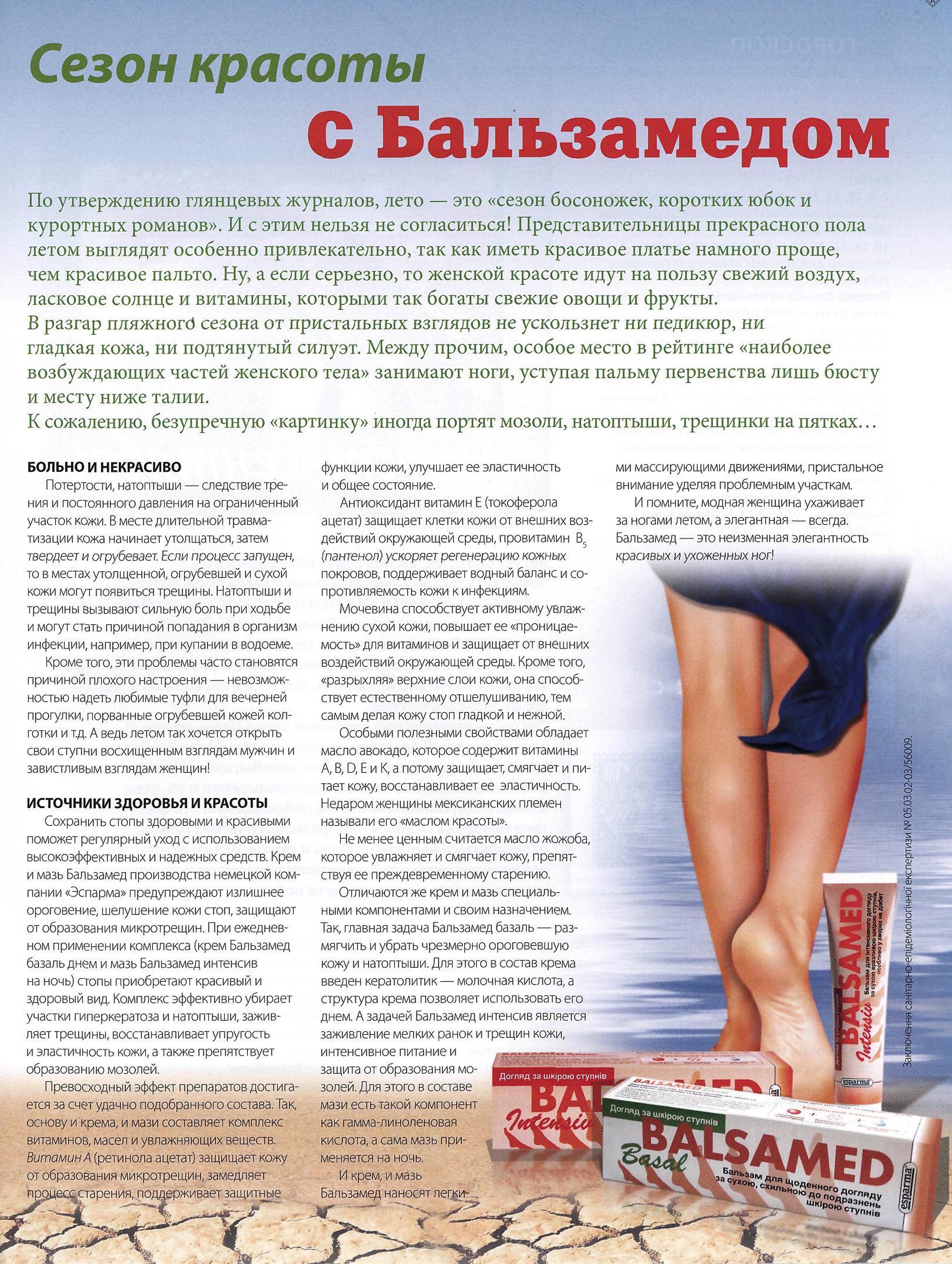 Ключевые слова: Бальзамед базаль (актив), Бальзамед интенсив, уход за стопами, сахарный диабет, мозоли, трещины, натоптыши, шелушение, мочевина
