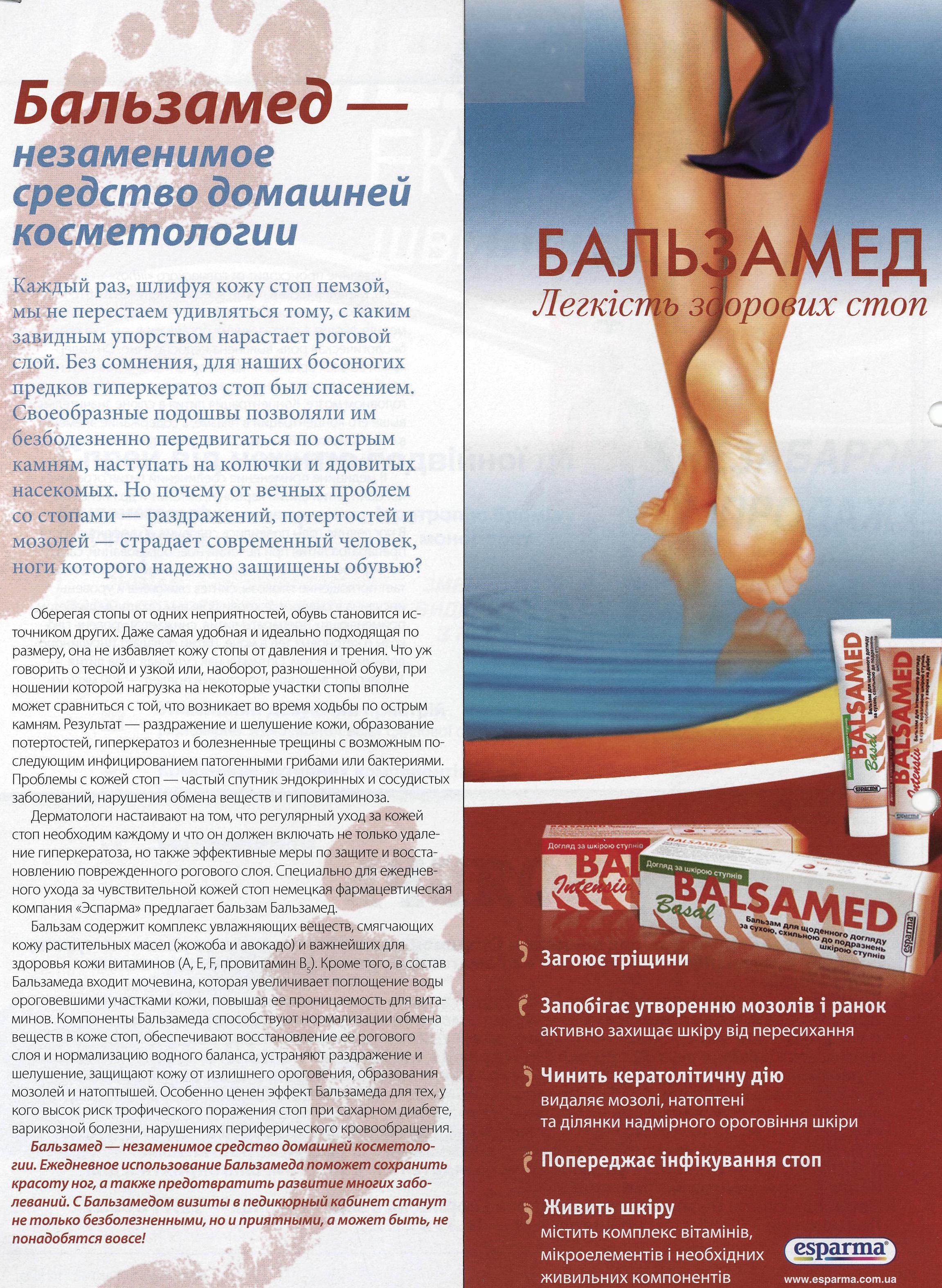Ключевые слова: Бальзамед базаль (актив), Бальзамед интенсив, уход за стопами, сахарный диабет, мозоли, трещины, натоптыши, шелушение, мочевина, дерматология