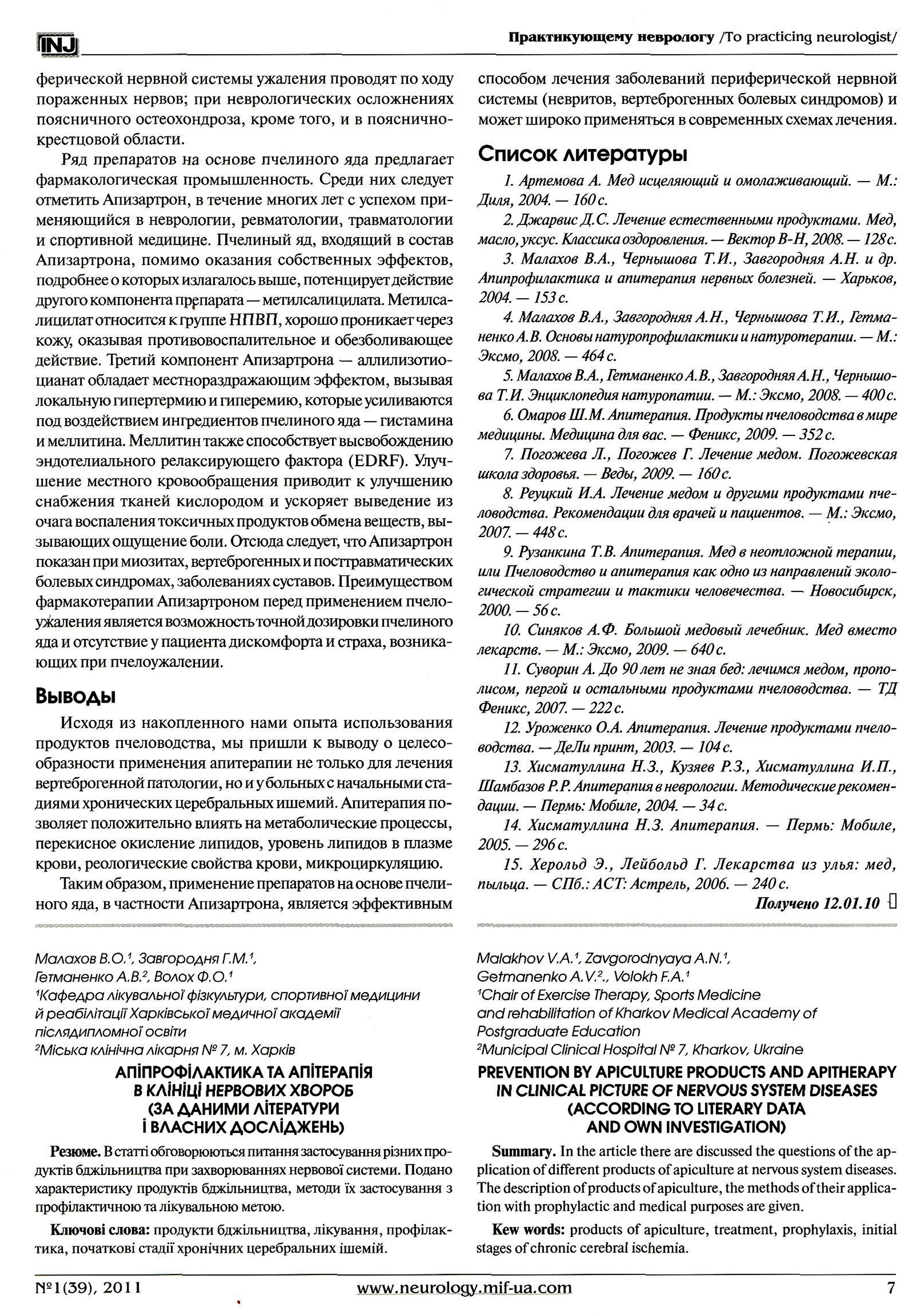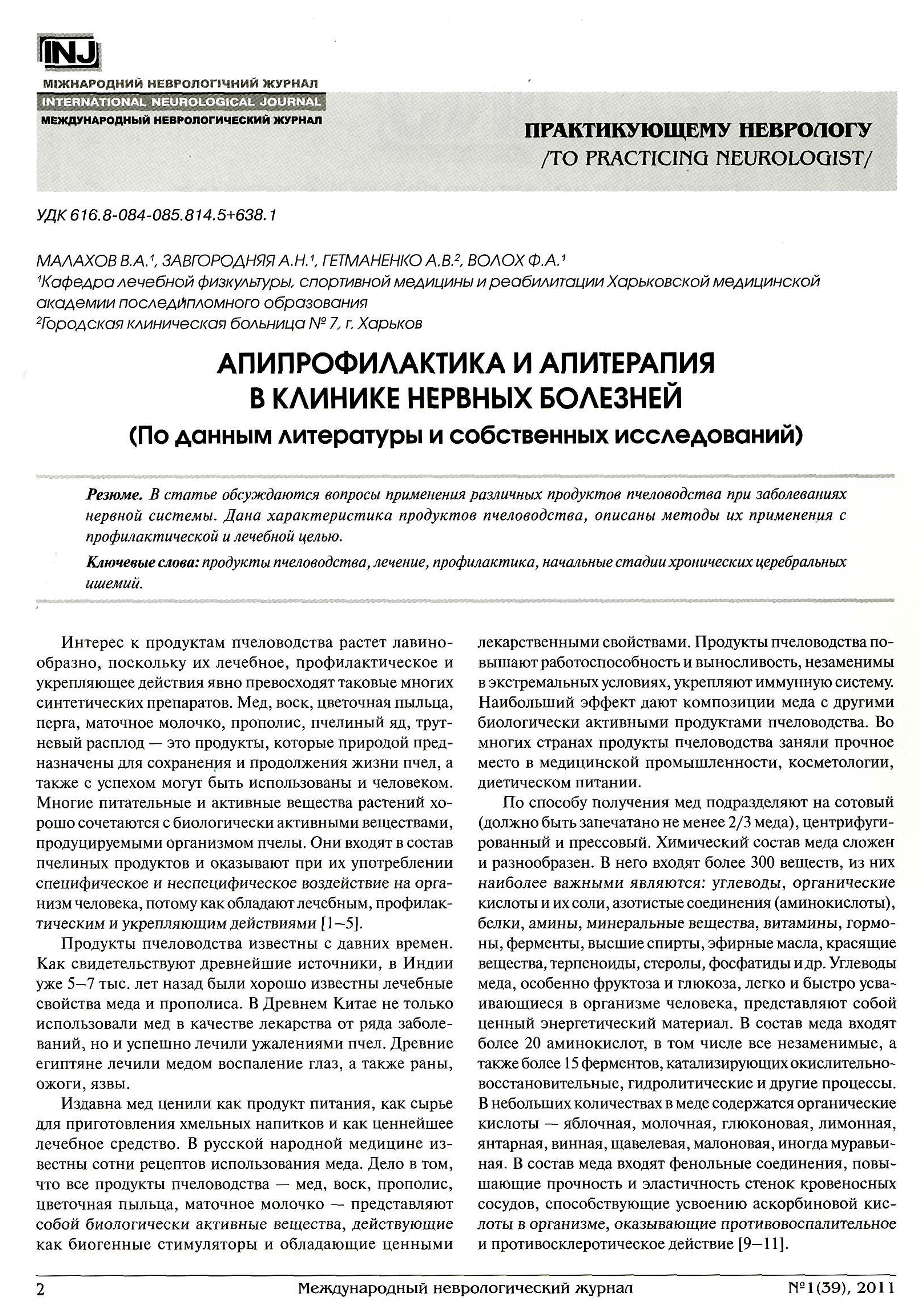 Ключевые слова: мазь Апизартрон, пчелиный яд, продукты пчеловодства, лечение, профилактика, начальные стадии хронических церебральных ишемий.