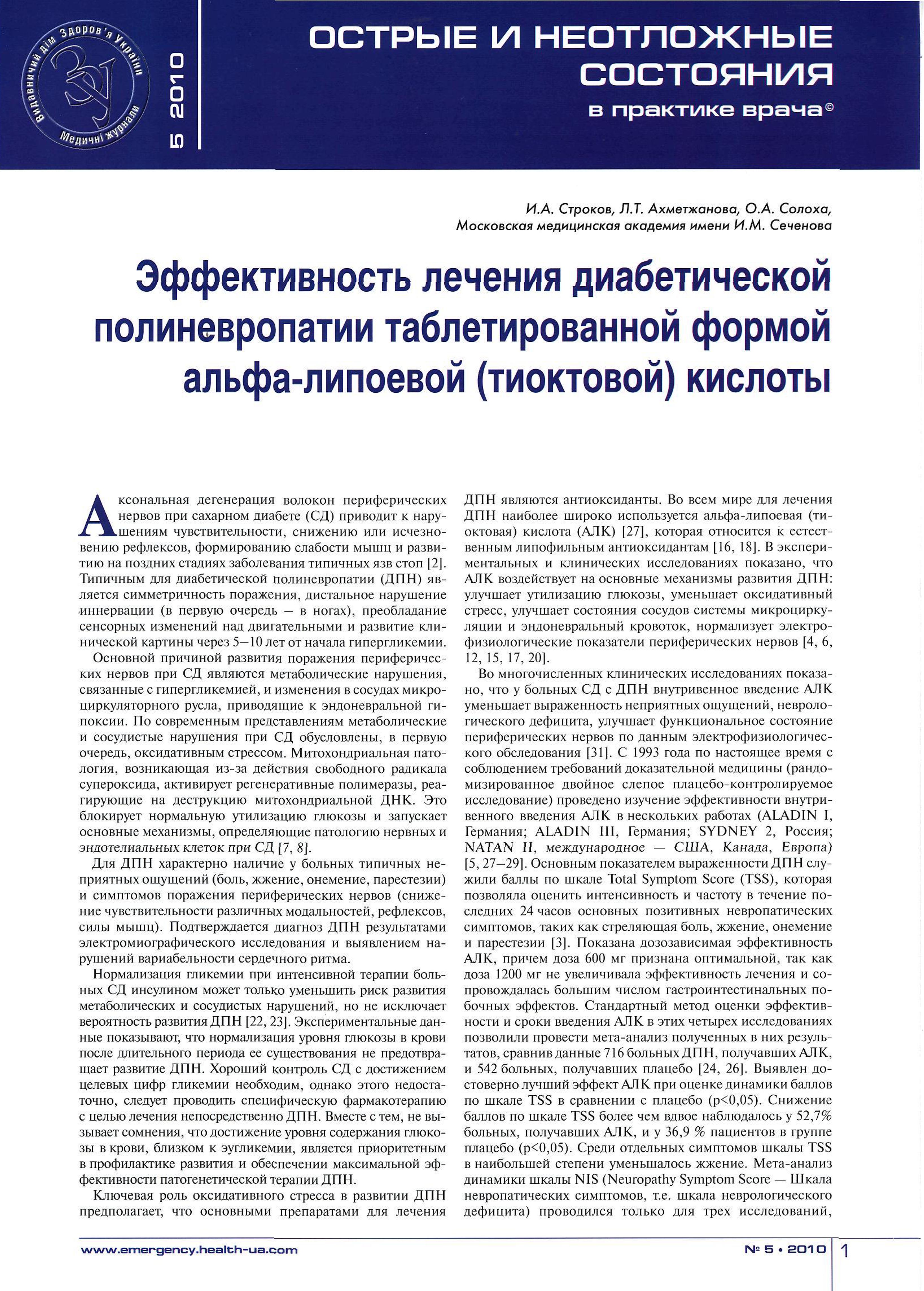 Ключевые слова: Эспа-липон таблетки, Эспа-липон ампулы, альфа-липоевая кислота, сахарный диабет, СД, окислительный стресс, АЛК, ДПН.