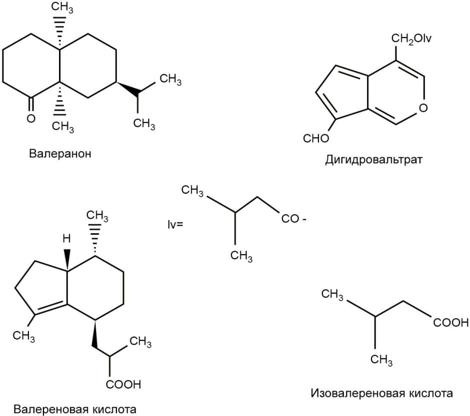 Рисунок 3. Некоторые биологически активные вещества, содержащиеся в экстракте валерианы.
