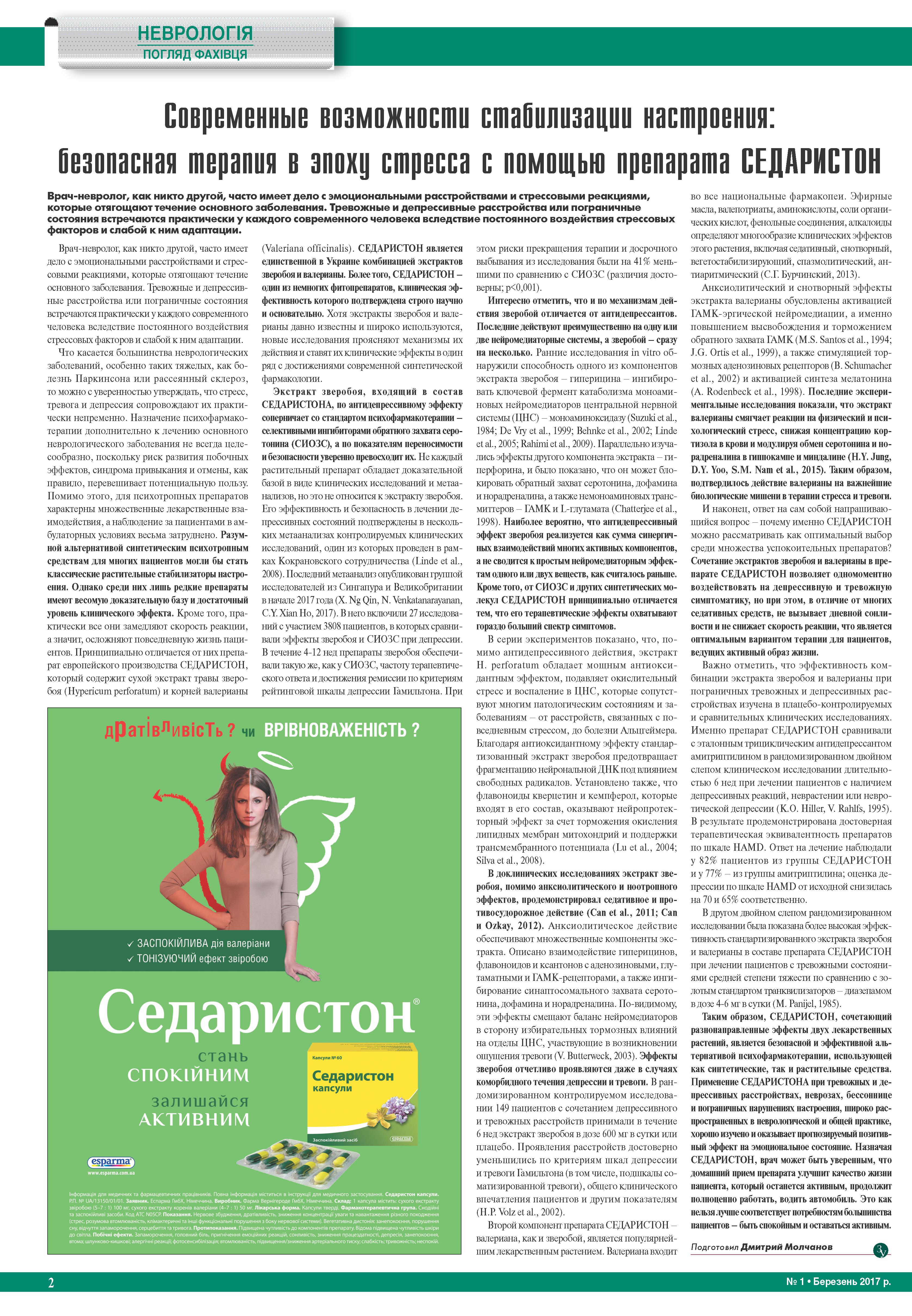 Ключевые слова: Седаристон капсулы, валериана, гесперидин, депрессия, стресс