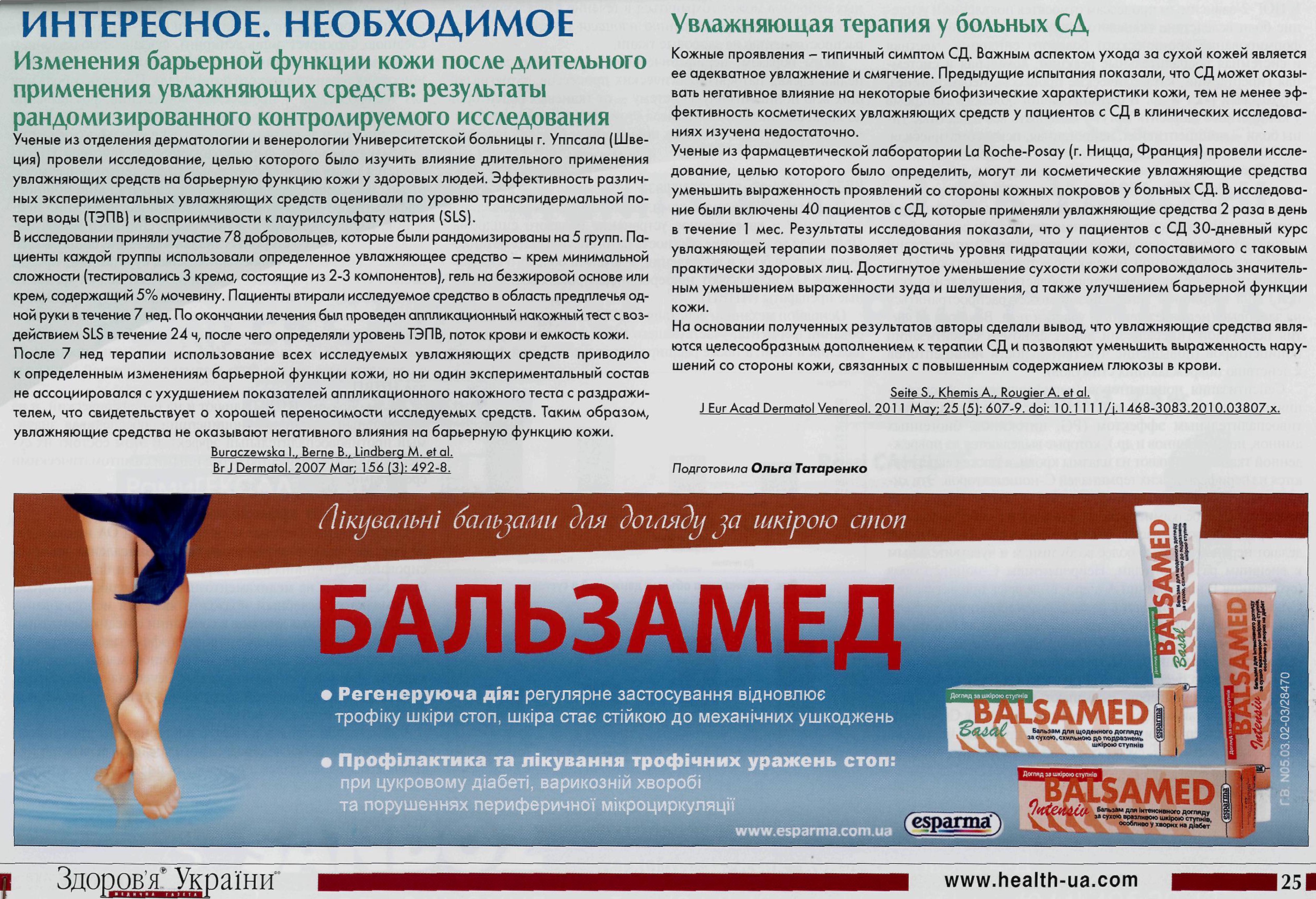 Ключевые слова: Бальзамед базаль (актив), Бальзамед интенсив, уход за стопами, сахарный диабет, мозоли, трещины, натоптыши, зуд, шелушение, мочевина, гидратация кожи, глюкоза в крови