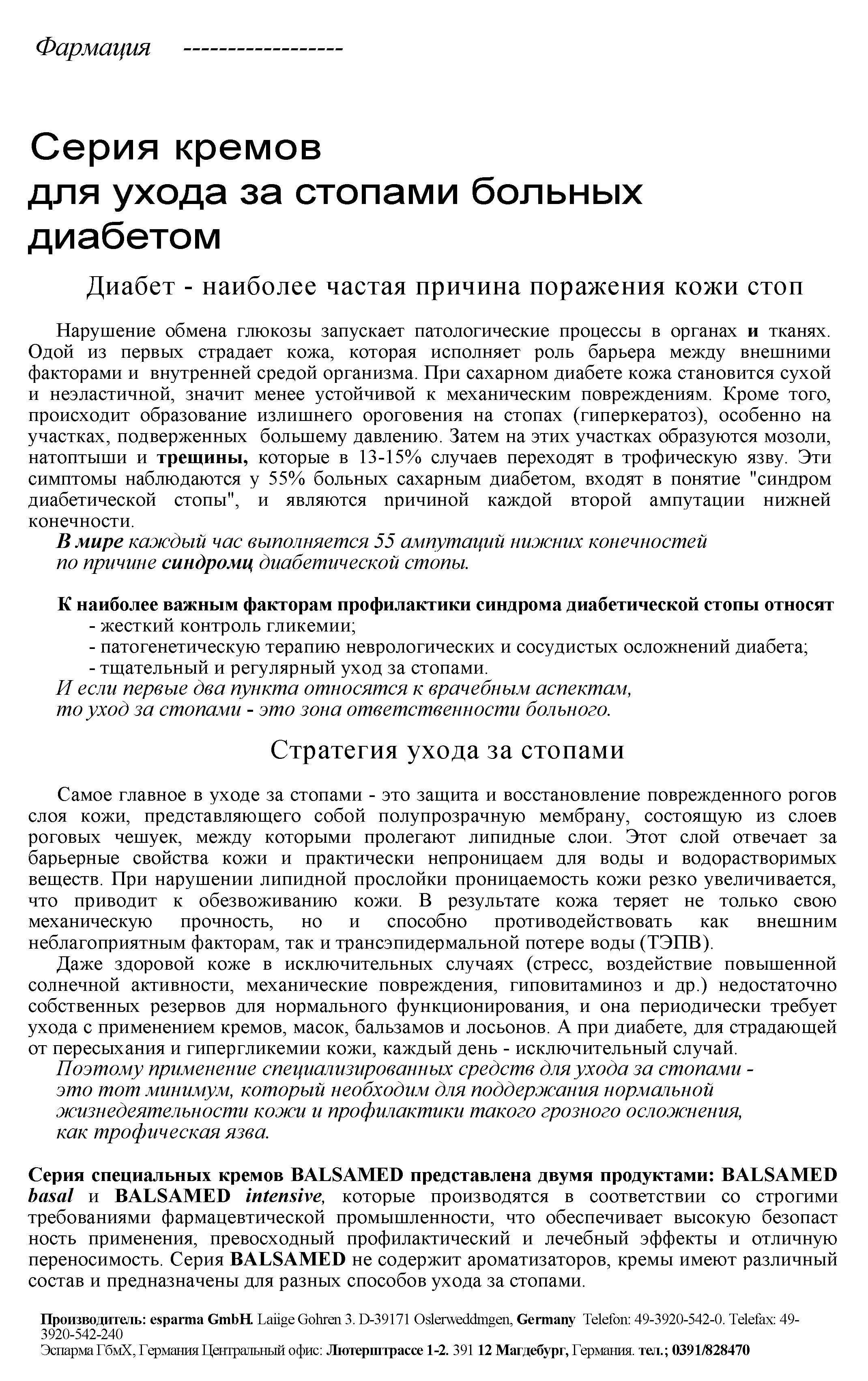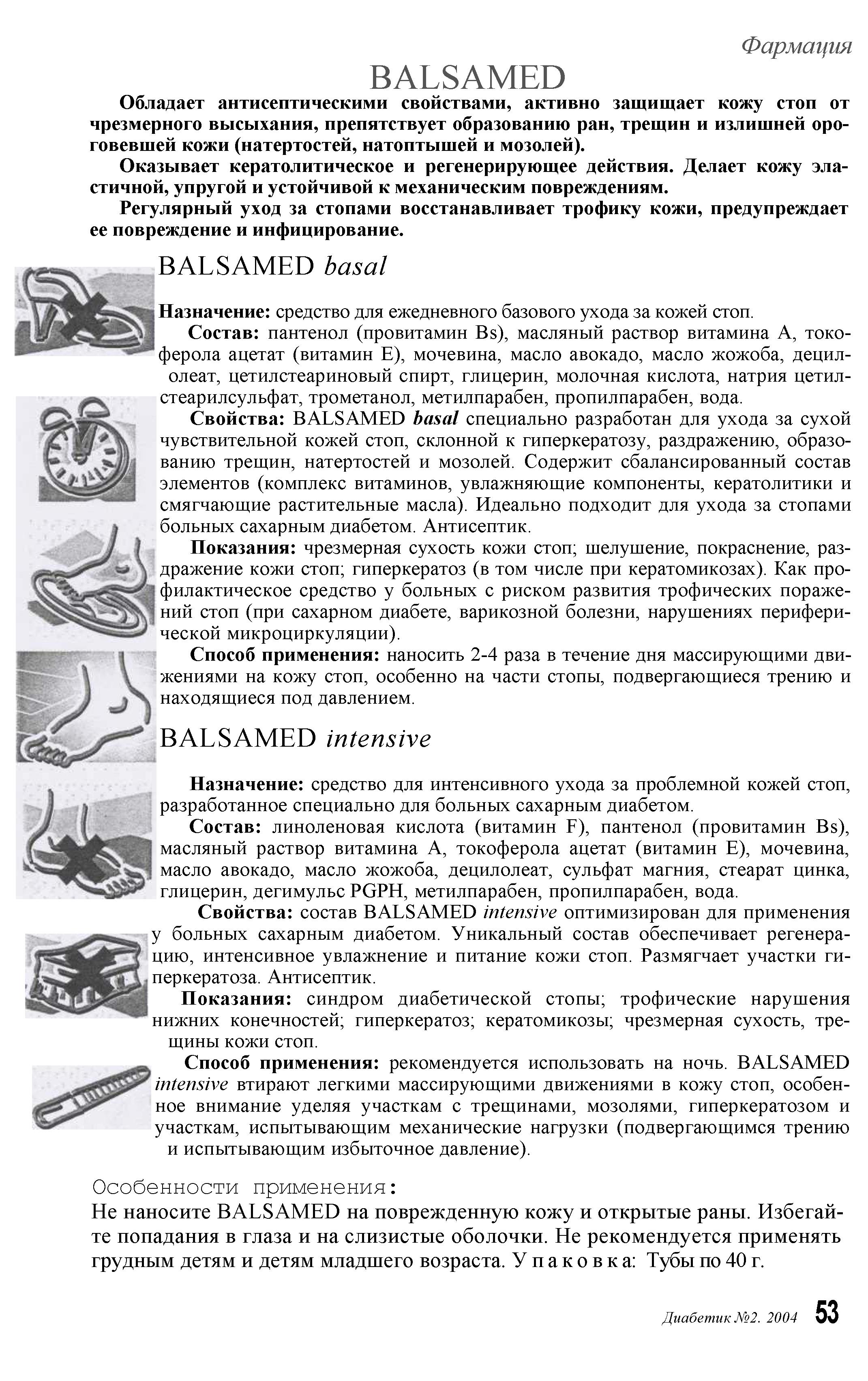 Ключевые слова: Бальзамед базаль (актив), Бальзамед интенсив, уход за стопами, сахарный диабет, мозоли, трещины, натоптыши, шелушение, мочевина, заживление трещин.