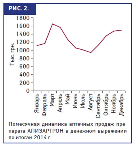 Розничная реализация препарата АПИЗАРТРОН отличается четко выраженной сезонностью — рост объема продаж приходится на весну и конец осени — начало зимы (рис. 2). Поэтому именно сейчас очень важно сформировать правильный товарный запас, чтобы потом не столкнуться с дефектурой и не упустить такую необходимую в наши сложные времена прибыль.