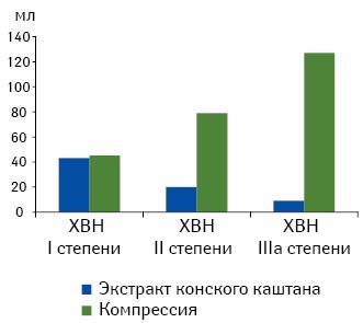 Между тем эффективность компрессии и экстракта конского каштана одинаковой оказалась только в одном из исследований (условно № 1 — Diehm C. et al., 1996). В другом же (№ 2 — Diehm C., Schmidt C., 2000) эффективность компрессии была выше.